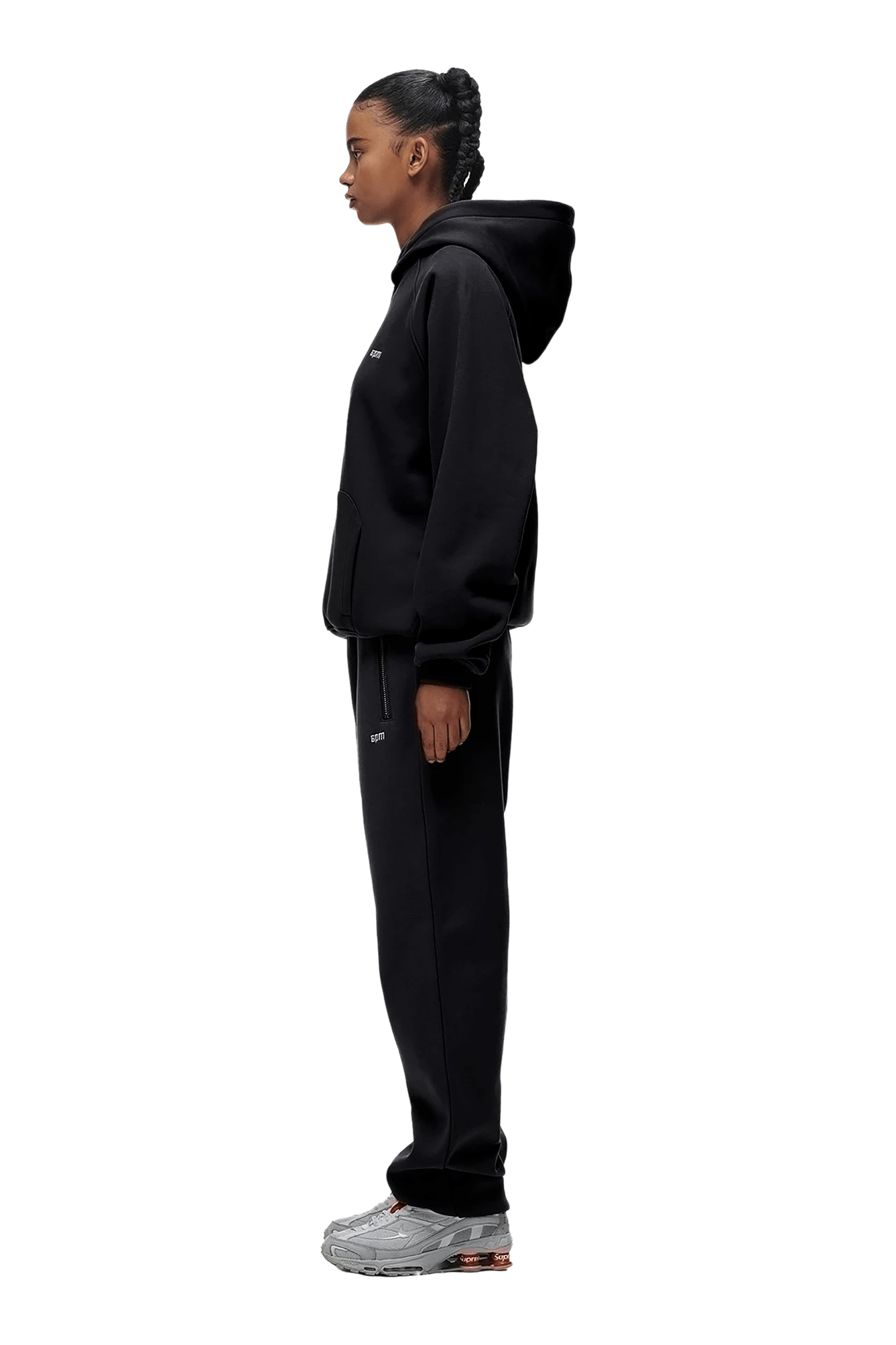 Raglan sleeved hoodie. This one’s not too boxy, not too slim, right in between. Kangaroo pocket at the front, perfect for everyday use.